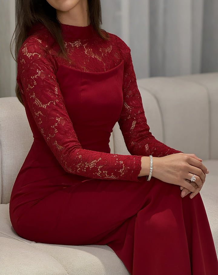 The Trace Dress features a timeless silhouette with delicate lace sleeves and a fitted bodice that highlights the waist. Designed in a rich deep red tone, it blends sophistication and femininity with a modern, graceful touch. Perfect for evening occasions, weddings, or formal events, this gown captures effortless elegance in every detail.